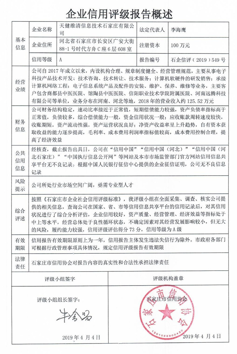 天健维清信息技术石家庄有限公司