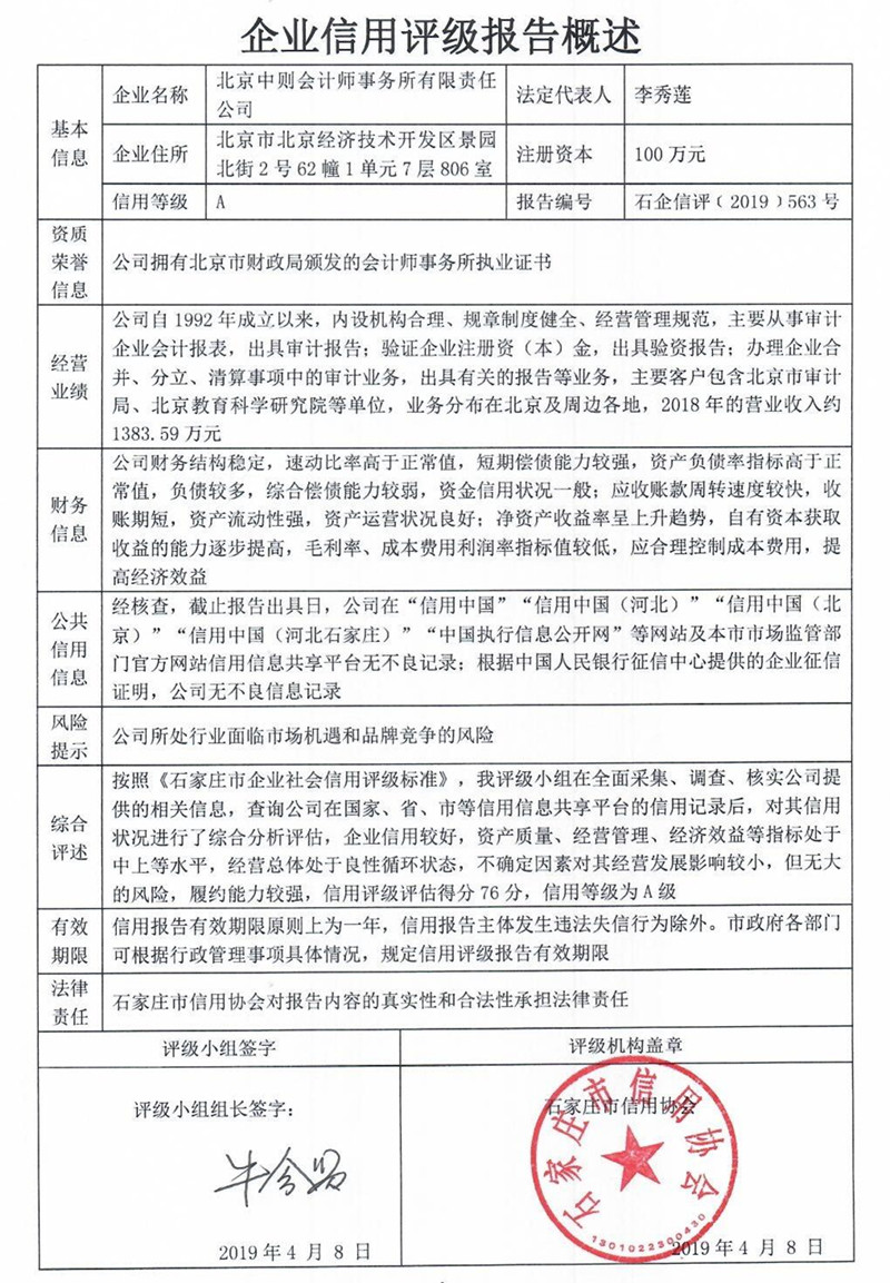 北京中则会计师事务所有限责任公司