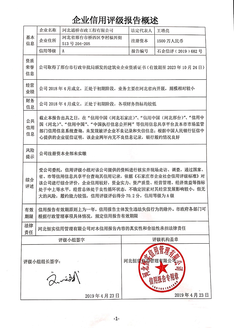 公司(评级)资质