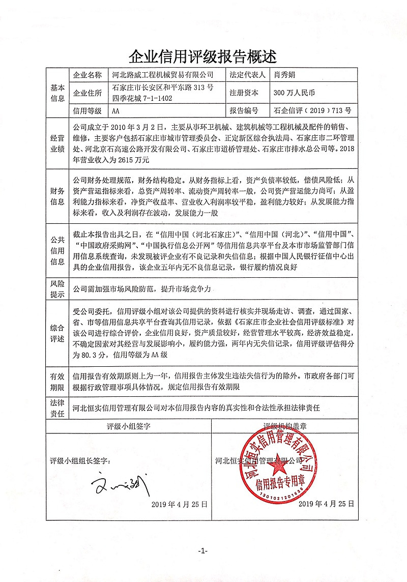 河北路威工程机械贸易有限公司