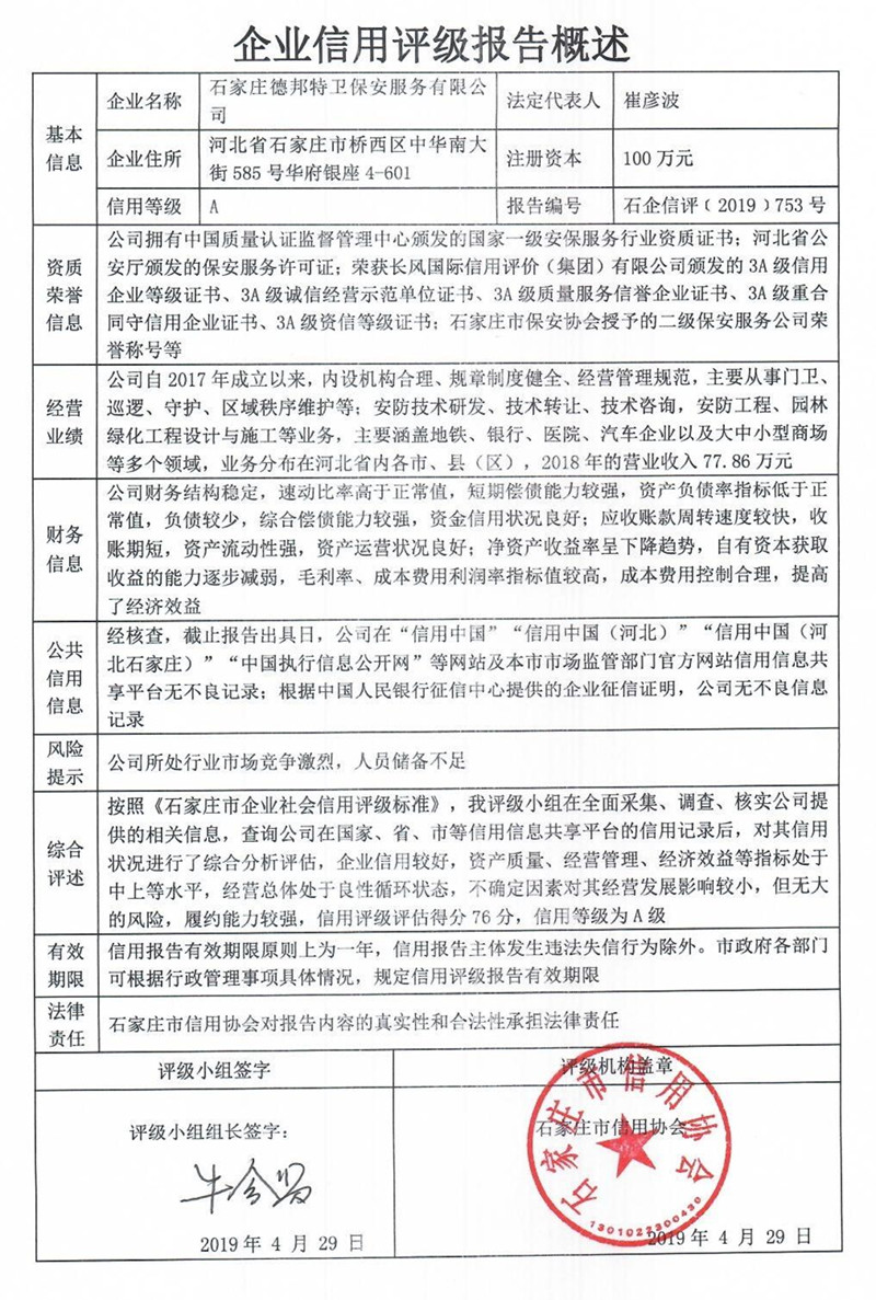 石家庄德邦特卫保安服务有限公司