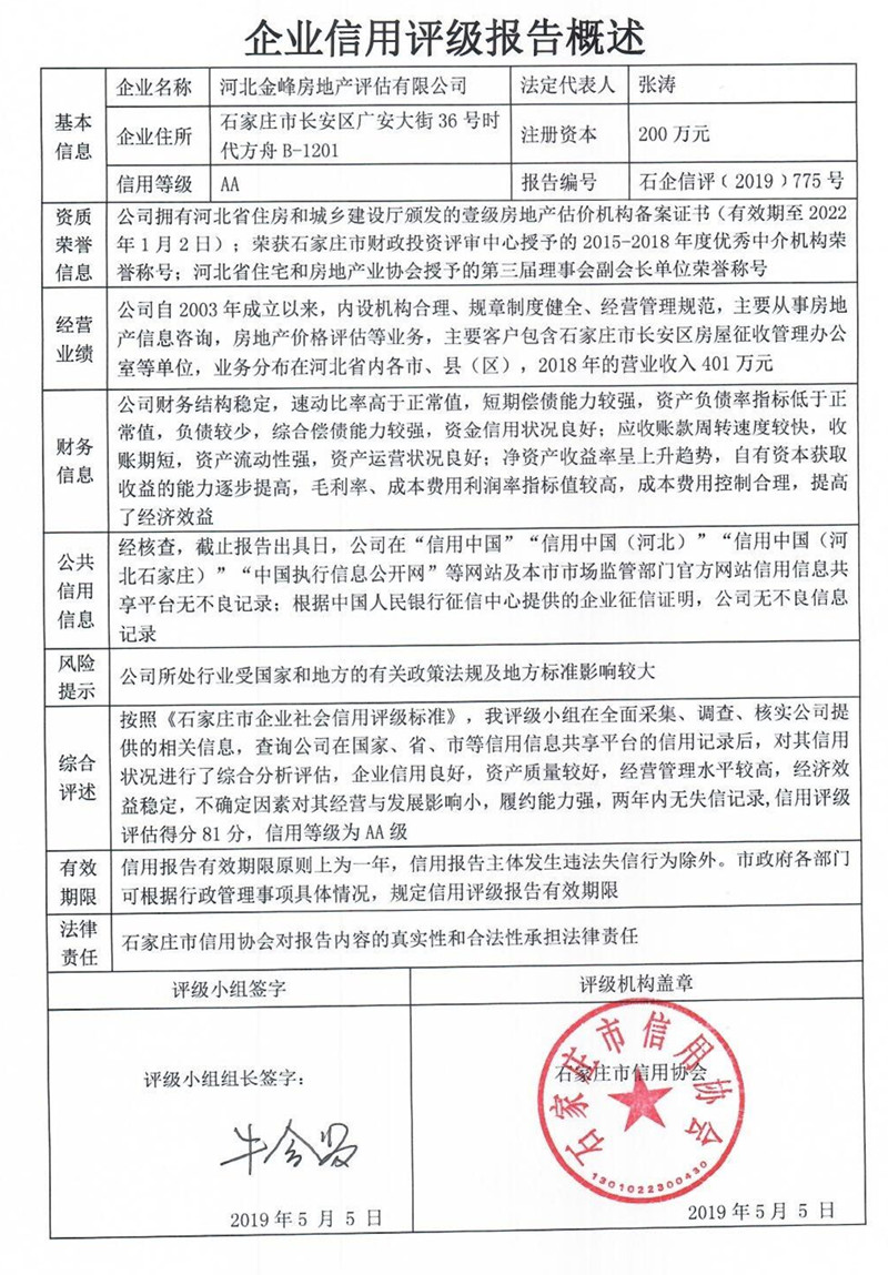 河北金峰房地产评估有限公司
