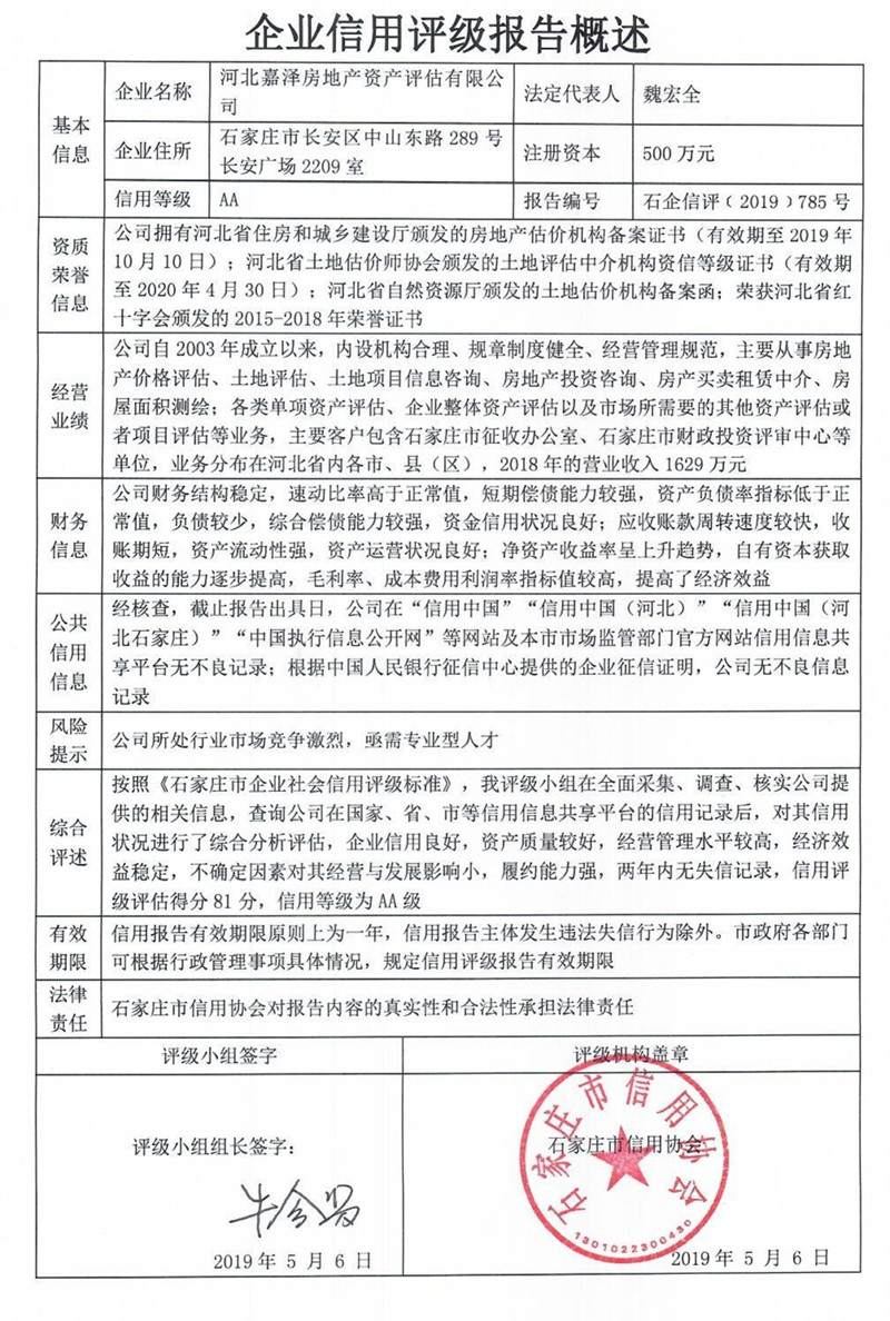 河北嘉泽房地产资产评估有限公司