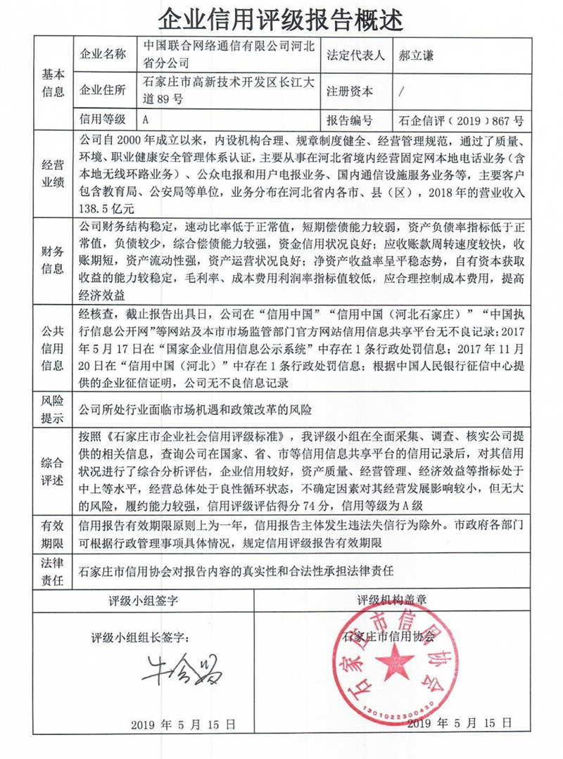 中国联合网络通信有限公司河北省分公司